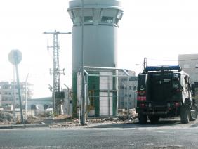 A temporary checkpoint operated there until December, 2011. It was extremely congested during rush hours, and dangerous for pedestrians (especially children) because of inadequate safety provisions. The new checkpoint was inaugurated south of the old one, for public and private transportation and for pedestrians, intended solely for the residents of the camp – holders of blue ID cards, and those with Palestinian ID cards who possess appropriate permits. There are five vehicle inspection stations at the checkpoint, and two for pedestrians (one of which is currently closed) where scanners have been installed but are not yet operating. According to the army, representatives of government agencies will also be present to provide services to residents of the neighbourhood. The pedestrian lanes are very long, located far from the small parking lots, and accessible through only a single revolving gate.