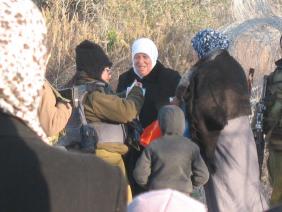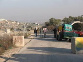 Several people, including three women and two children, are already waiting in front of the locked gate. They tell us that in the morning the soldiers are suspicious of anyone wearing three layers of clothing, as their intent might not be to work their land. The soldiers feel that two layers of clothing are sufficient. The Palestinians and we both feel that it is cold, very cold indeed, early in the winter morning.