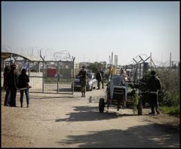 13:15 Habla There are only few people carts and vehicles at this hour. A young man who seemed worn out tried to cross in the direction of Habla with a horse and small wagon loaded with broken junk. The soldiers forbade him to enter because his permit was not appropriate, and anyway they asked him to unload the wagon. The final decision was that he was forbidden to cross.