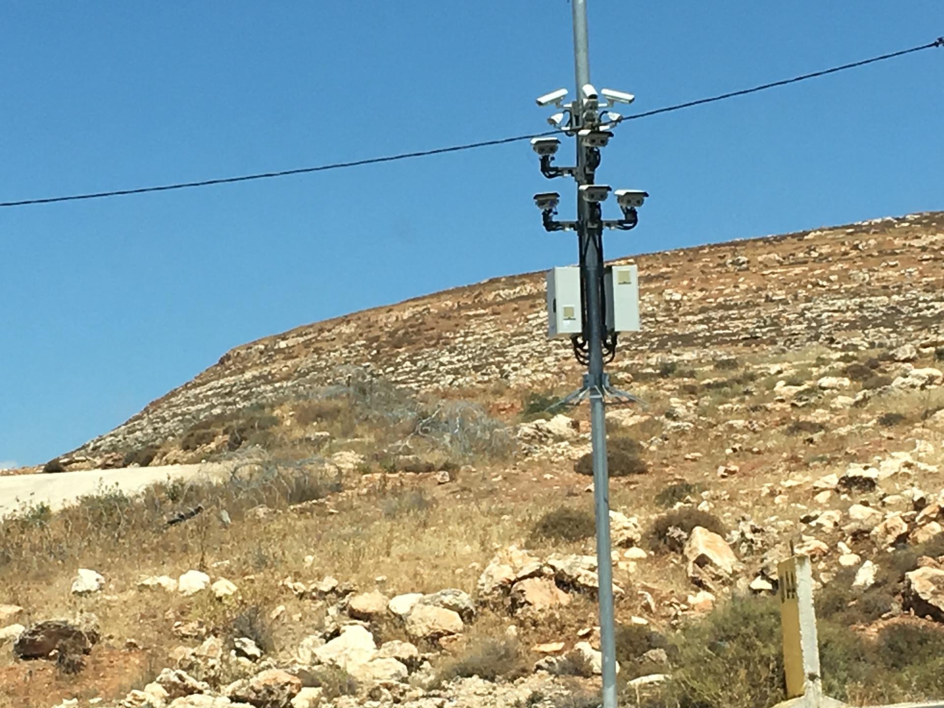The photo shows a tower with several cameras at the strategic entrance to Beit Furik. Technology ensures Big Brother doesn’t miss any of the sights and sounds of the villagers’ daily comings and goings.