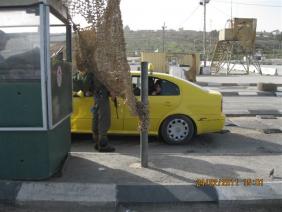 15:00 Za'tara CP – A Border Policeman checks vehicles. A queue is formed. Two vehicles – a minibus and a private car are detained on the side and their papers checked.