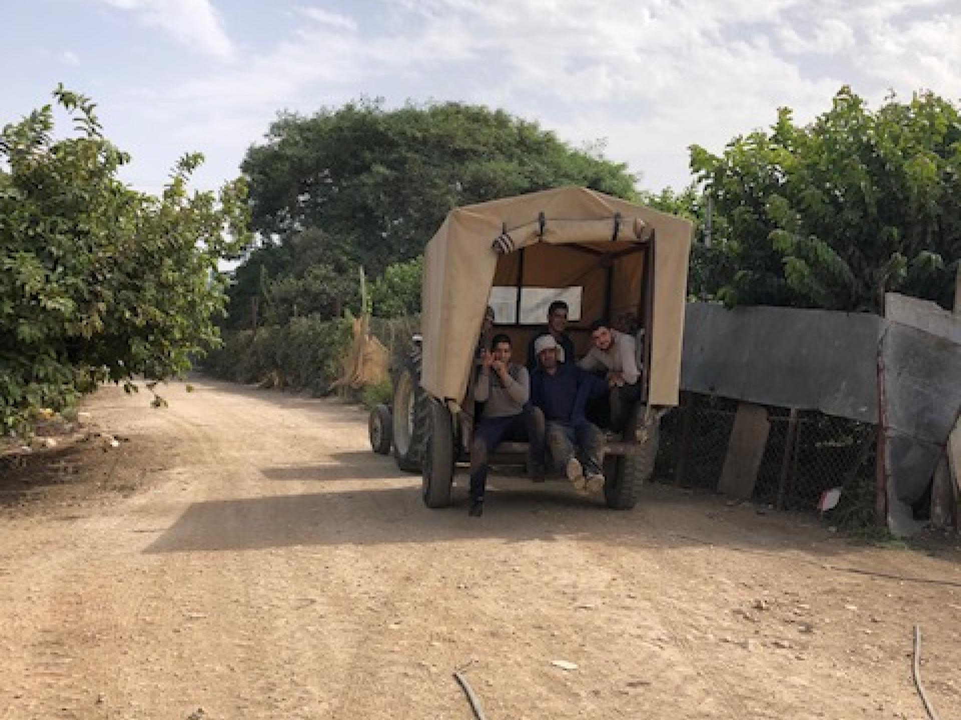 13:55 The soldiers have already arrived. One tractor crossed to Jayous; the soldiers later say that tractor went through in the morning and they opened the gate for it now. They open in the afternoon only if they know someone went through in the morning. The tractor with the seedlings also showed up, the soldiers say they still haven’t received authorization to let him cross. The driver stays on the phone. At the last minute the DCL authorizes his crossing and he goes through. Praised be the lords of the army.