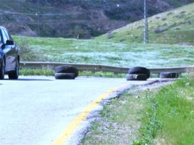 3. Tires placed by the Palestinians to mark road repairs
