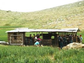 Two of Samara’s inhabitants approach me, seeking help. M. and his brother graze their flock, and at the end of summer when the grass is scarce, they enter that miserably neglected place which the occupier has named “Um Zuka nature reserve” in search of food for their livestock. Every time they are caught there with their flock, they are fined thousands of shekels. They say they have documents proving their ownership claim to the land inside the reserve from those days when the region’s people were allowed to make their living out of the valley’s growth. They have consulted with a lawyer who told them there was nothing to be done. On the other hand, while a nature reserve, the area is also a “firing zone” for the army (the two signs stand next to each other…) and the army’s maneuvers often set the reserve in flames. M. and his brother tell us how on different occasions they recruited their extended family to fight the flames, as none of those authorities who so hastily fine them for grazing there never came to the rescue… They are seeking some protection, help against this abuse.