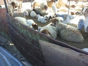 We came to photograph B.’s lambs who lie alongside their mothers in the fenced area, with no protection from the sun. B. wants to cover the place with a metal roof.