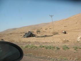 We continued to the township of Tayasir. A private car with yellow license plates moved past us. A man from Nazareth who was on his way to Tubas, expressed interest in knowing who we were and asked whether we knew that the passage was forbidden for Israeli citizens like ourselves. When he relaxed he greeted us with “Hag Sameach” and we continued on. We saw no army presence in the area. We saw shepherds on donkeys, and herds. One of the shepherds, who was standing by the side of the road, happily accepted a bottle of water which we offered him.