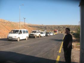 A line of 16 cars waits from the eastern direction (right photo); a similar line on the west side (left photo). All the time cars join the line, but it doesn’t move.