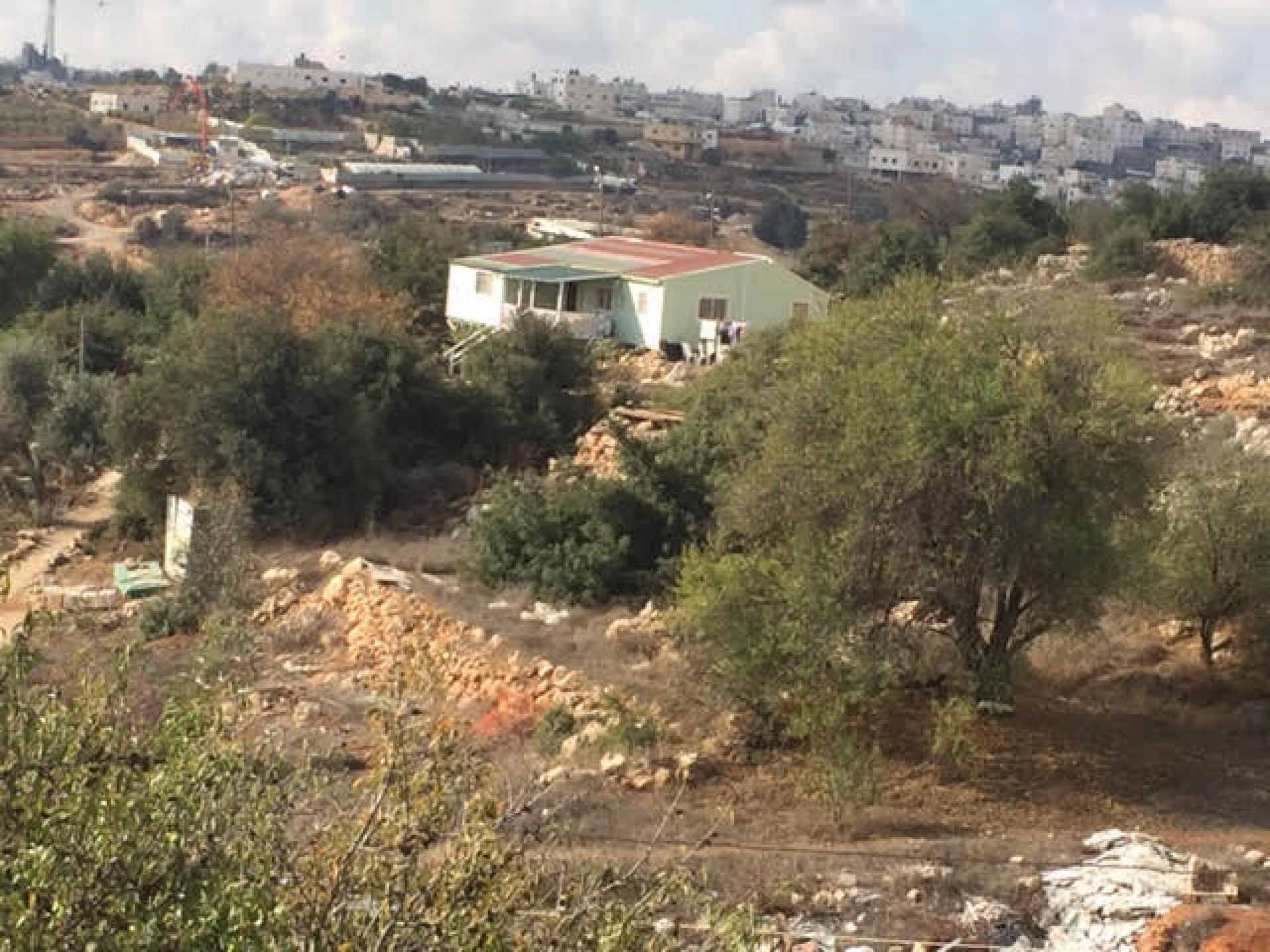 The pillbox at the top of the hill of the Abu Snan neighborhood, which is in Area H1, and which is supposed to be under Palestinian control only, boasts a new wall around it. It is far from where we are allowed to go. Therefore, the photographs are blurred. However that may be a military vehicle is driving there with three mobile buildings. At the parking lot next to the Cave of the Patriarchs another three are waiting.