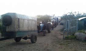 The farmers say "coming here to sneak around at the gate". 5 soldiers arrive at 5:55 but they just hang around until 6:00. The Palestinians are watching them with contempt. .. so am I. The soldiers open the gate taking the position of "the guys in charge": legs wide apart, guns hanging loosely pointing to the ground and hands in pockets. They order the farmers to walk to the check post, five at the time. About 10 tractors and men and women cross, some of them riding on donkeys others walking. The gate closes at 6:25.