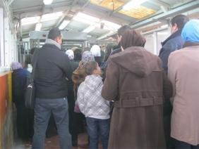 When we reached Qalandiya at 3:30 PM we found all our friends from the northern shed, the peddlers with their pushcarts, standing outside under the dust-filled sky.  They told us that they had been warned last Wednesday by a group of policemen that they could no longer stand in the shed.  Since then they have been chased away every day.  Fadi told us that the police had confiscated merchandise (fresh strawberries and almonds) worth NIS 5,000 and that a peddler named Jabber had suffered a loss of NIS 10,000, including a fine.  The peddlers provided names of the policemen who had been particularly hard on them.