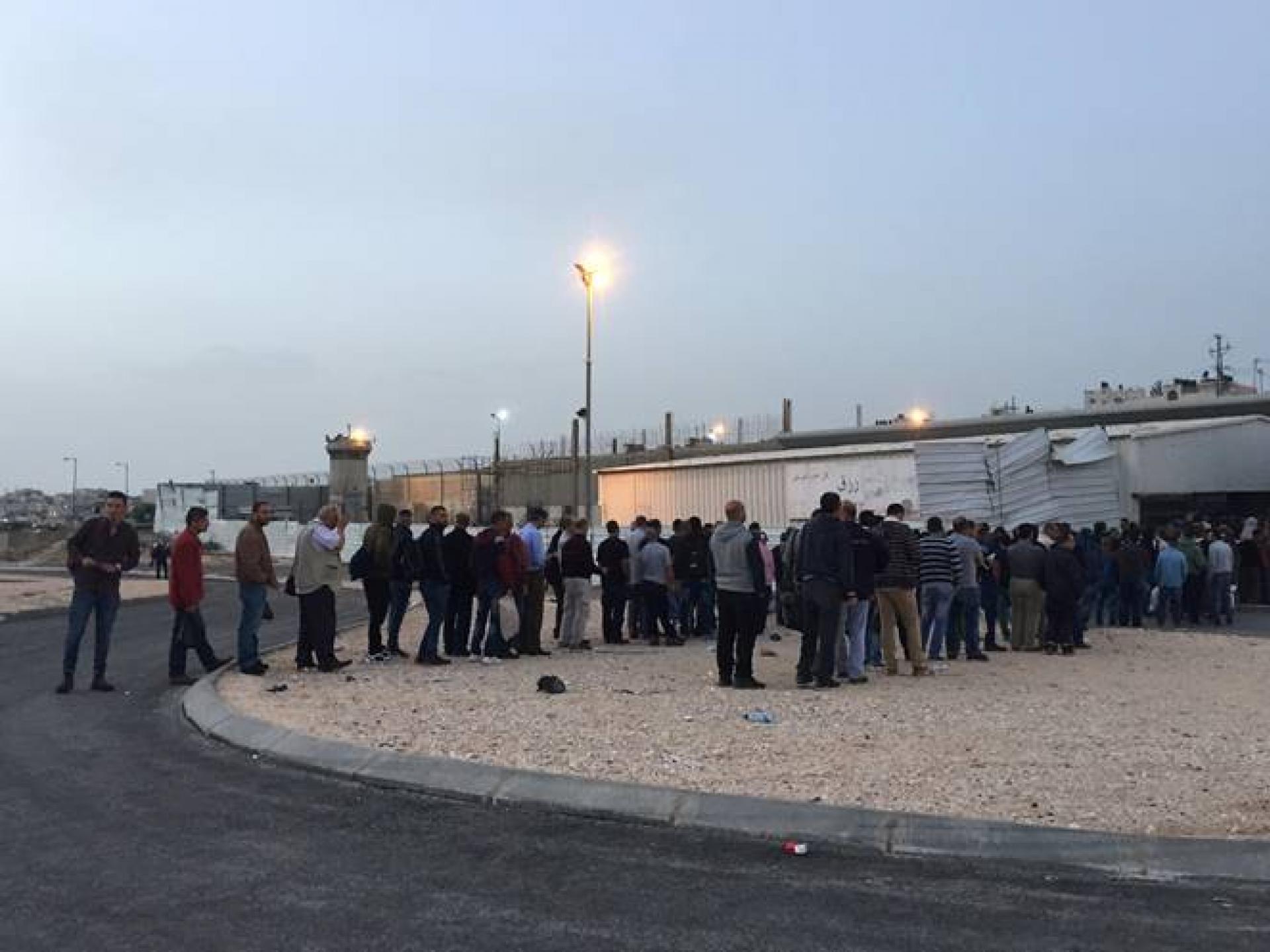 05.15. On arrival we saw very few people coming out of the checkpoint. This was already the sign of a slow checkpoint . Indeed, when we entered, there were three queues stretching from inside the shed all the way to the street.