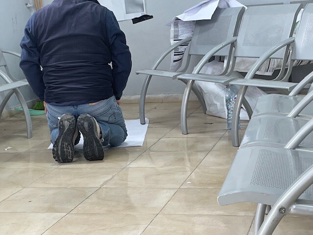 נהג מונית ממתין לנוסעים בחדר ההמתנה במת"ק