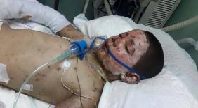 קטייבה בן ה-9 שנפגע מפצצה שהכילה זרחן לפני שבועיים ונשרף בכל גופו