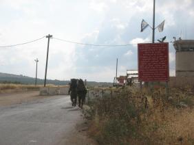 מחסום יעבד-דותן בתמונה שני חיילים ניגשים אלינו