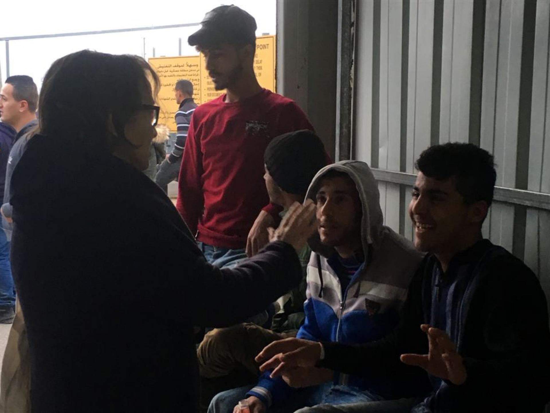 כל החניונים מלאים ואנחנו חונות בלית ברירה על הכביש ליד אבני שפה צבועות באדום-לבן למרות שניידת משטרה מסתובבת בשטח. פועלים רבים מגיעים כל הזמן ונבלעים ברכבי ההסעה שממתינים להם. במכולה ומתחת ליריעת הפלסטיק הכחולה מתפתח לו שוק די עליז, בו ניתן כבר לקנות, נוסף על מאפים, ממתקים ומשקאות – גם ג’ינסים אופנתיים. אין כאן רמז להתרחשויות האחרונות בג’נין. אליה, שמטפלת בעשרות בקשות לאישורים, מקבלת היום עוד שלוש פניות.