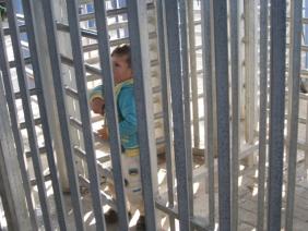 בכניסה למחסום פעוט כבן שלוש שאחז בכנף בגדה של אמו ששתי ידיה היו טעונות באחיו