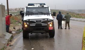 מאחורי משוריין משטרתי במחסום הדרכים ג'בע עמד בחור פלסטיני מעוכב.