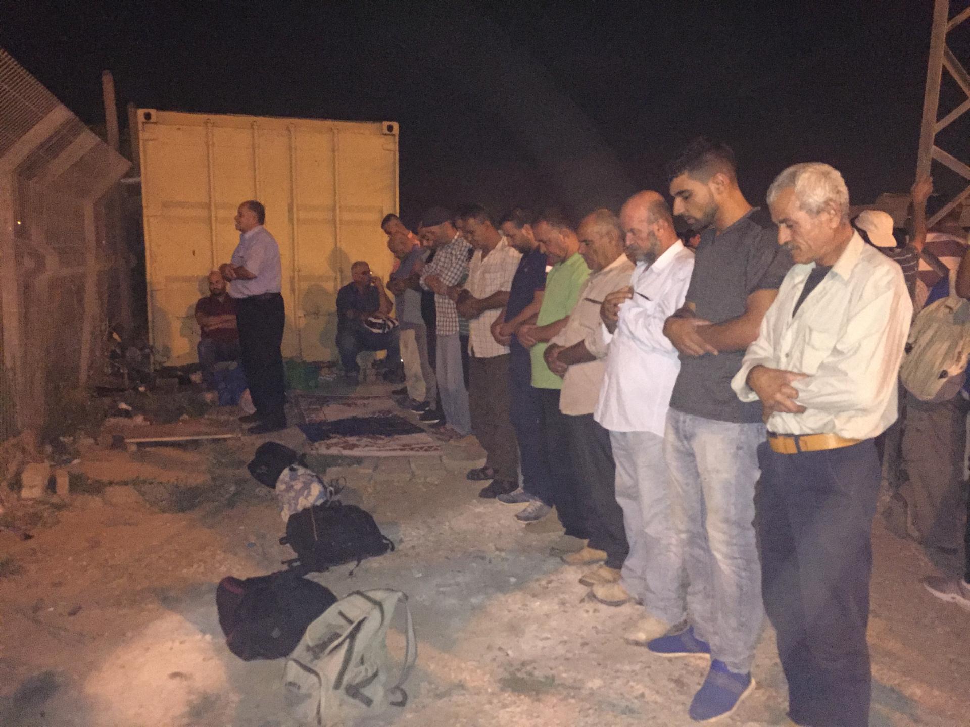 בצד המהומה על שטיח תפילה מתפללים סלאת אל פג’ר בקבוצות, כאשר העומד לפנים שר את התפילה ומתחלפים כל הזמן.