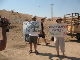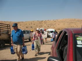משאית עם מים מילאה את המיכלים של המשפחה, ומשתתפי הסיור הביאו גם בקבוקי מים מינרלים. בכל זמן שהותנו במקום עמדו בצומת מכוניות צבאיות וטנדר משטרה.