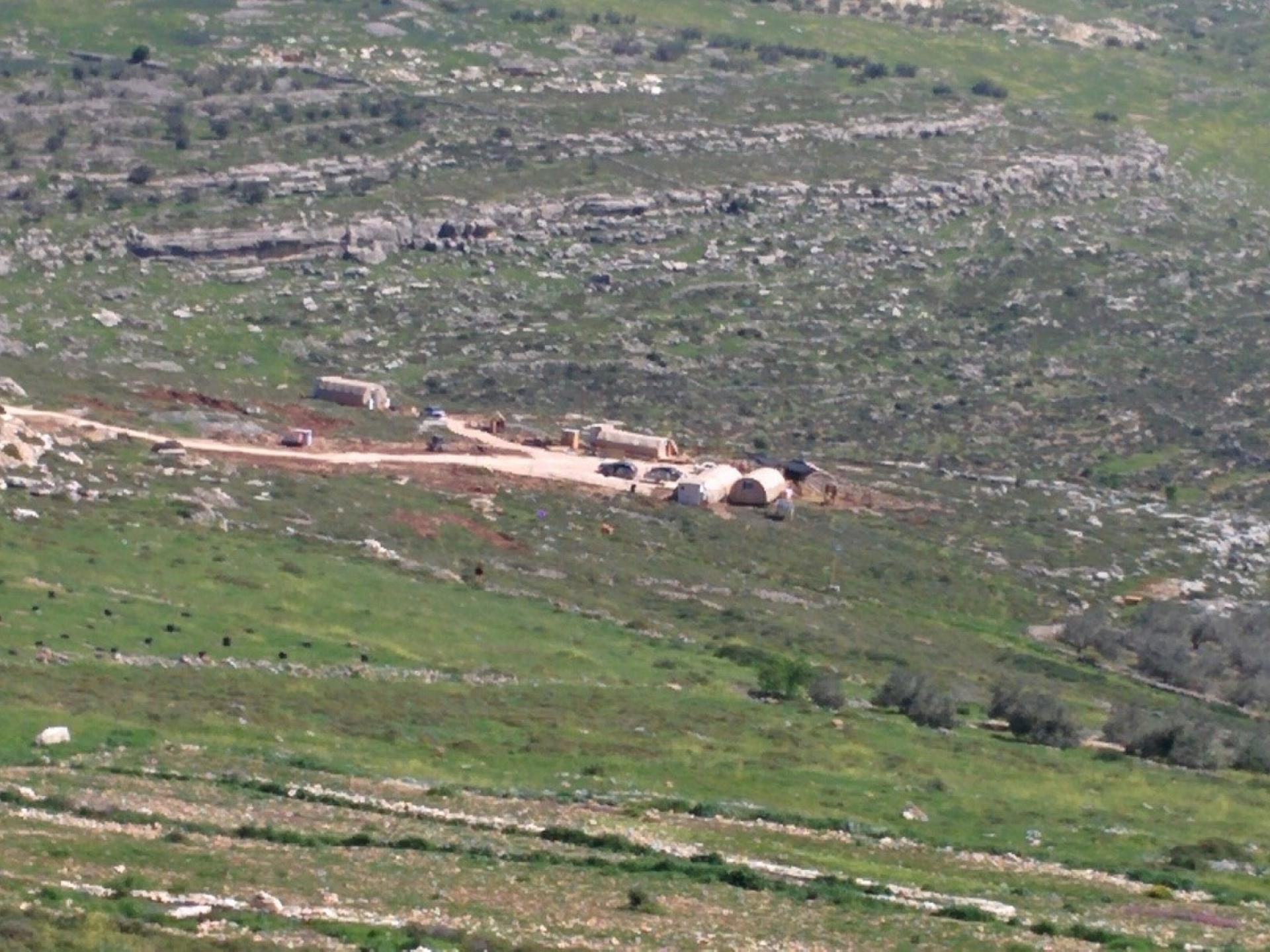 הלכנו עם ע’ במעלה הגבעה. היום היה יפה והנוף משגע, עין פסטורליה שכזו. הגענו למקום ממנו אפשר להשקיף על המאחז החדש שאפשרו למתנחלי חוות גלעד להקים לאחר רצח הרב שלהם. כמה קראוונים מוקפים בגדר. עד כה בנו המתנחלים רק על ההר עכשיו לראשונה בנו בעמק, אמר ע’.