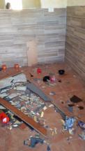 בקבוקי תכשירים שתכולתם נשפכה, מכשירים זרוקים על הרצפה. שום פריט לא נמלט מידם הרעה של החיילים.