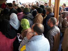 16:05 ארתאח – שער אפרים. תור ארוך וצפיפות לפני הקרוסלה. מסתבר לנו שמידי פעם סוגרים את הכניסה למספר דקות ורק אחרי שמצטבר קהל רב האור האדום הופך לירוק, השער נפתח וזרם בלתי פוסק של פלסטינים עובר. אנחנו מנסות לבדוק מהי הסיבה לסגירה וליצירת הפקק אך לא מקבלות כל תשובה מהשומרים.