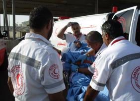 בין שני אמבולנסים ושתי אלונקות והרבה ידיים הועברה חולת סרטן מהגדה לצדו האחר של מחסום קלנדיה כדי להגיע לטיפולים בביה"ח אוגוסטה ויקטוריה שבמזרח ירושלים.