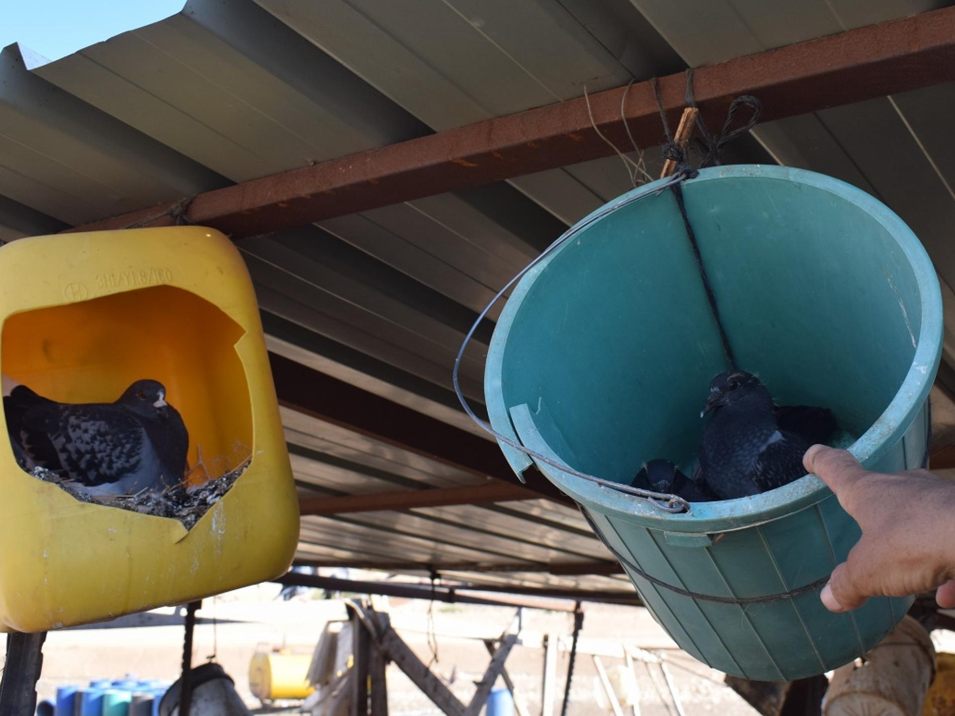 16.00 – ח’רבת מקחול: ביקרנו את נאג’יה, אשת יוסף בשאראת שבהיריון עם הילד השמיני. בניגוד להיריון הקודם , הפעם היא פורחת וקורנת ומאוד מאושרת. בעוד שבוע צריכה ללדת. אף פעם לא הרמנו ראשינו לגג של הדיר, והפעם, לראשונה ראינו. שובך יונים מאולתר מעשרות כלים – דליים, ארגזי קרטון, ג’ריקנים ועוד כל מיני חפצים ובהם עשרות יונים יפהפיות .