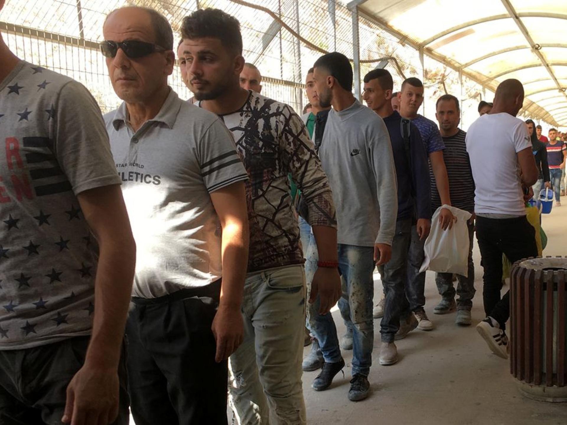 פועלים רבים עוברים בקרוסלה היחידה בדרכם לבתיהם בגדה. מדי פעם נוצר פקק אך לא לאורך זמן. רבים מהם מפריחים לעברנו ברכות שלום וחיוכים.