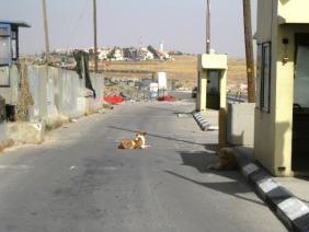 שני כלבים משוטטים נחו ביו שתי עמדות המחסום.