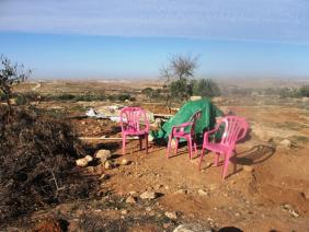 נסענו לסוסיא כי ביקשו מאיתנו לבוא לראות את ה"בית" שנהרס ב-4 בדצמבר, ולא בפעם הראשונה. במאבק האין סופי על השאלה למי שייכת האדמה ולמי הזכות לבנות עליה, אוהלי הבד, הפלסטיק והעצים שמהווים בתים לאנשי סוסיא נהרסים השכם והערב בתקווה לייאשם ולהסתלקותם.