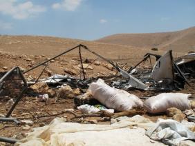 12:15 ביקרנו במה שנשאר מהמאהל של סלאמין באל חדידיה. לפני שבועיים הרסו את האהלים, המשפחה הקימה אותם מחדש וביום שני האחרון 8.7.13, ב 5:30 בבוקר, כשהילדים עדיין ישנו הרסו שוב. אנחנו