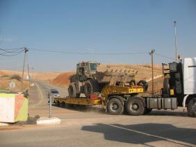 שלוש משאיות תובלה, על שתיים מהן שופלים ענקיים מלאי בוץ ועל השלישית מחפר גדול ממדים, הגיעו מצפון ופנו בצומת חמרה מזרחה. (האם השלימו משימת הרס נוספת לפני שהגיעו אל הצומת? האם פניהם מועדות למשימה כזו?)