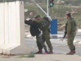 טרנזיט לבנה הגיע אל עמדת הכביש. מבלי שנלקחו ונבדקו תעודות הורד מהמכונית בחור צעיר. ראינו את הנהג נותן לו סיגריות. הטרנזיט המשיכה בדרכה. את הצעיר בדקו, אח"כ הושיבו אותו על המדרגות שיורדות מהעמדה ששימשה להולכי הרגל. אחד החיילים היה עם רובה מאחוריו. (עכשיו – בעת כתיבת הדוח, ברור לי שצריך היה לשוב אל החיילים, כדי לשאול אותם לפשר המעצר הזה. שגיאה. חבל שלא עשינו זאת).