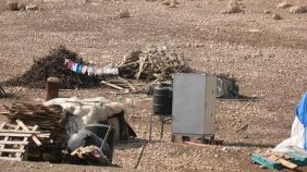 בפרק הזמן שהיינו שם, המתינו 10-6 מכוניות שנסעו מערבה אל הגדה. ההמתנה ארכה בין 5 דקות ל 20 דקות. משאית פרקה "מוצאות" (בתי שימוש, בצילום משמאל) בשטח המגודר שממערב לצומת. סמל (כומתת כפיר "גדוד לביא") שהגיע להתעניין בנו היה עסוק בשיחת טלפון עם מישהי. שני חיילים אחרים עסקו בקישורי הסככה הקרועה שלהם. מאוחר יותר הגיע הסמל בלוויית חייל חמוש ולבוש אפוד. הוא התעניין במעשינו והביע את פליאתו על שאנחנו לא מנצלות את הזמן שלנו למשל לשם סיוע לניצולי שואה. האפשרות שניתן לעשות גם וגם כלל לא היתה מובנת בעיניו.