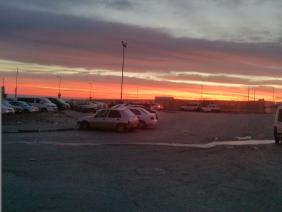 כדי להתאוורר מסיפורו הקשה של ח' יצאנו קצת החוצה לצפות בזריחה. במחסום הרכב כבר נשמעים צפצופים נרגזים. בחזרה בפנים נשמעות מדי פעם אמירות ברמקול מעמדות הבידוק (בעיקר של חיילת אחת) שהתקשינו להבין. הבנו שאנשים מבוגרים שנכנסים ללא היתר נדרשים להמתין לשעה 8. במקרה אחד שמענו חייל מורה למישהו לחזור בשעה 7, כנראה היה לו היתר החל מ-7.