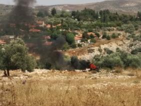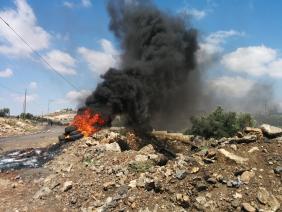 הגיעה העת למערכה האחרונה בהצגה השבועית. הרגע בו מעלים באש את הצמיגים שניקנו ונאספו במשך השבוע. אנחנו מצטרפות לתושבים. דגל פלסטין מתנוסס על עמוד בצידי הכביש. על פי הדגל אנחנו מזהות שהרוח נושבת מזרחה לכיוון קדומים. זהו מצב אידיאלי להבערת צמיגים. יש כמה מוקדים. האש חזקה ומכלה אותם במהירות. עשן שחור וסמיך מתפשט לעבר קדומים. נקמת הנכבש על פעולות הכובש. ככה זה כבר 4 שנים. קדום שמקדמת דנא, נאבקת בקדומים זה מקרוב הגיחה, עולה כפורחת יום יום בסיוע הצבא.