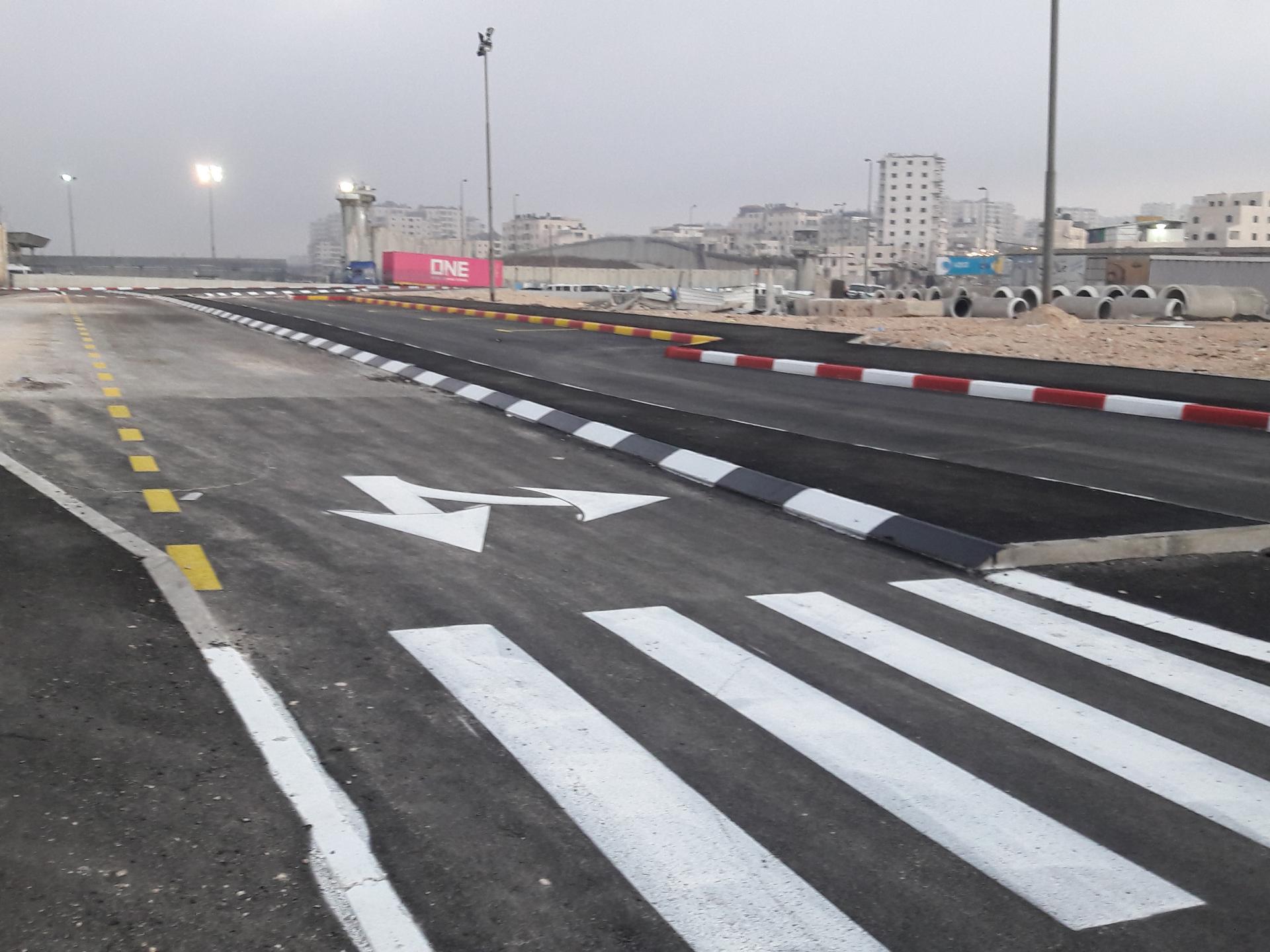 לקראת 6, כאשר האיר היום, יצאנו החוצה לראות מה התחדש. גילינו שצבעו את אבני השפה לאורך הכביש החדש וכן סימנו על הכביש מעברי חציה וסימנים אחרים. כך זה נראה ביציאה מהמחסום ובמרחק נראה שסימנו כך שאל הסובה החדשה תגיע רק תחבורה ציבורית ומכוניות פרטיות יצאו מכביש שיסלל בקצה מה שהיה פעם החניה: